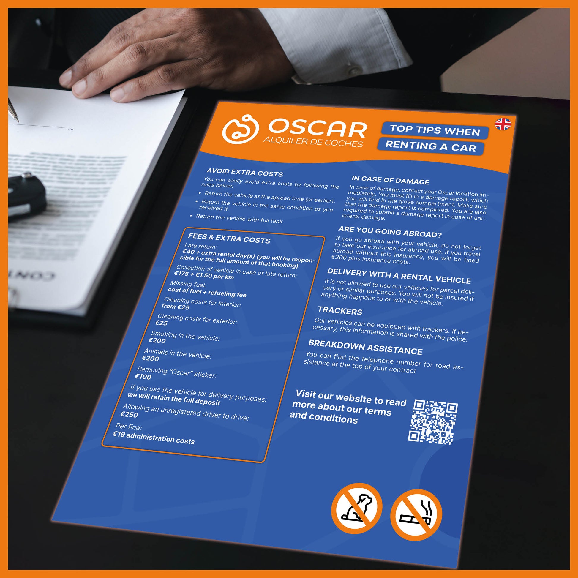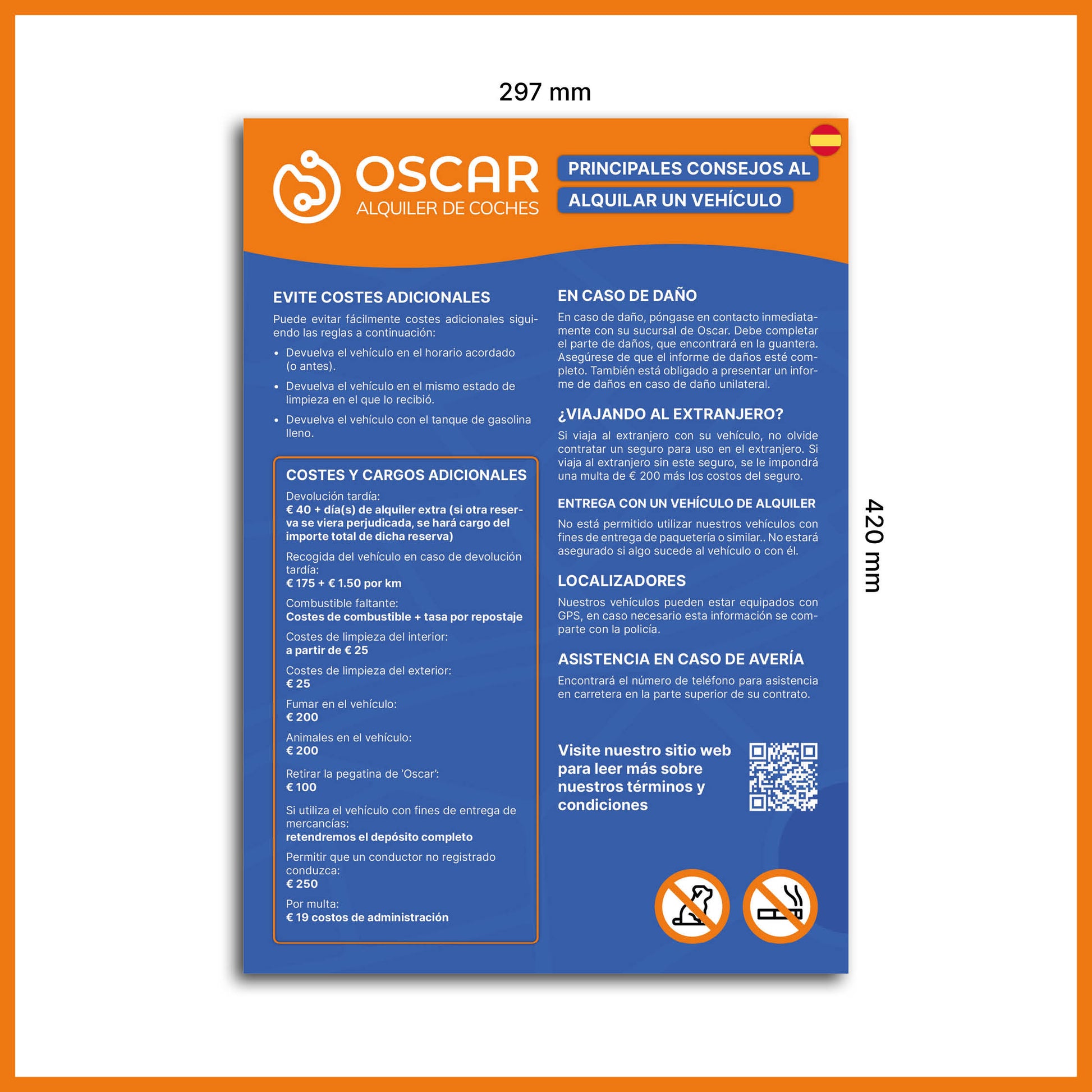 A helpful sign with tips and reminders to avoid extra charges when renting a car. Perfect for displaying at the counter or in the waiting area. Clear, informative, and customer-friendly.