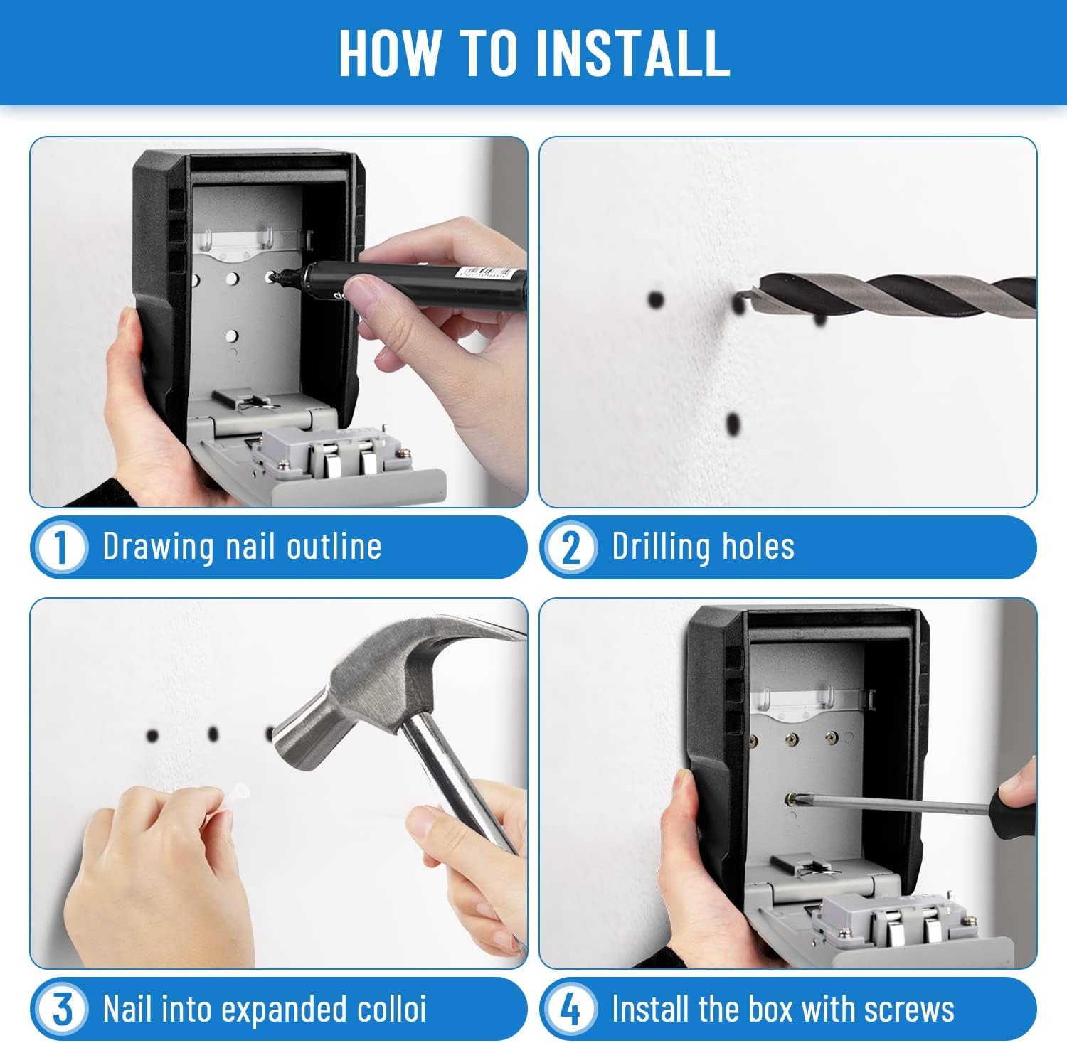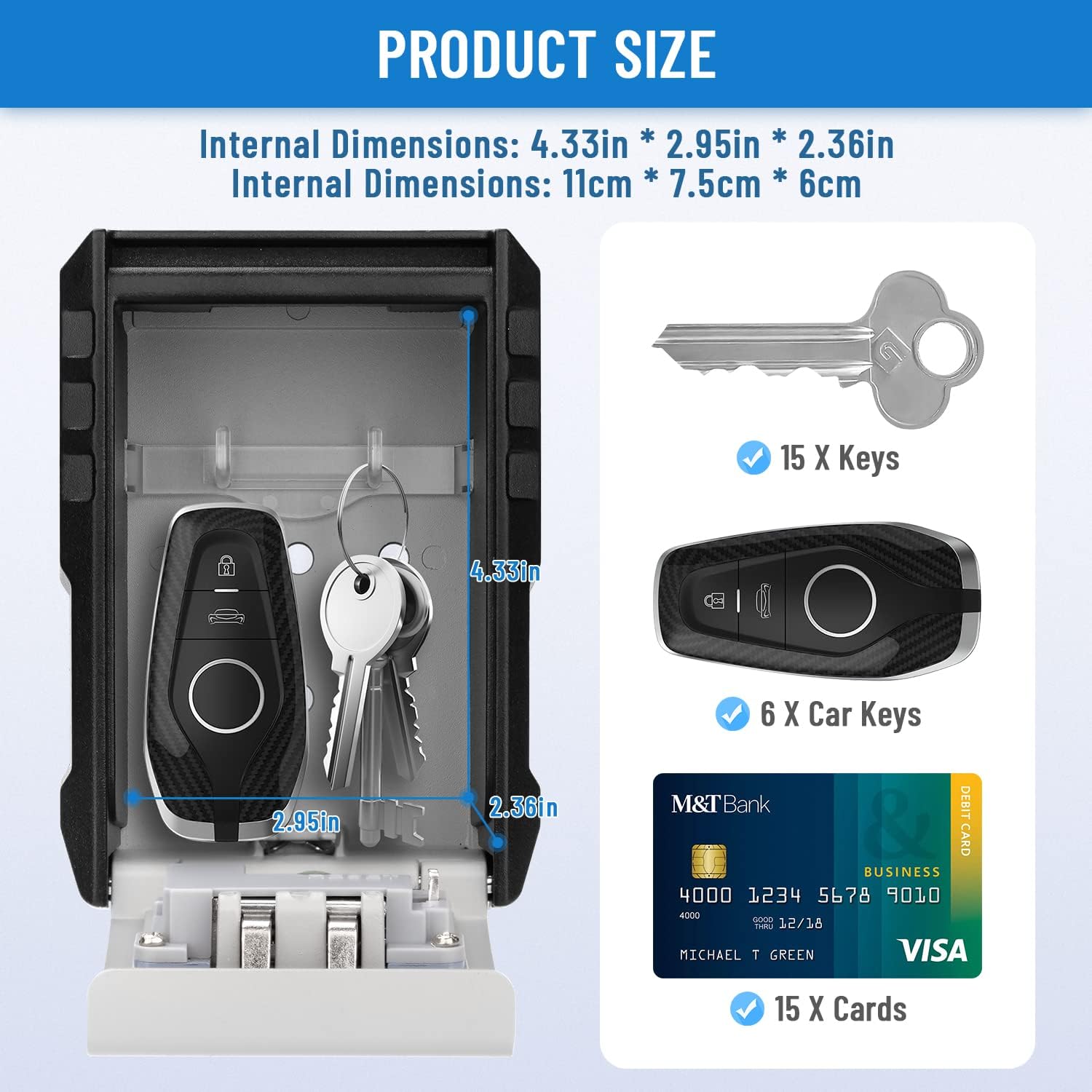 Caja fuerte para llaves con cierre de combinación, fabricada en aleación de zinc resistente y resistente al agua. Perfecta para guardar las llaves del coche de forma segura. Fácil de montar y con código de 4 dígitos.