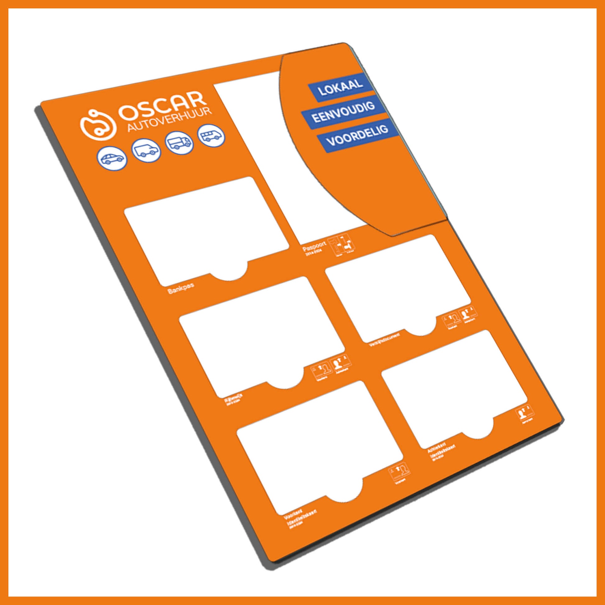 Maak snel en veilig een kopie van een rijbewijs of identiteitskaart met de Oscar ID-template. De afgeschermde vlakken zorgen ervoor dat persoonlijke informatie, zoals het BSN-nummer en handtekening, onzichtbaar blijft. Zo voldoet u aan de AVG en beschermt u privacy op een eenvoudige manier.